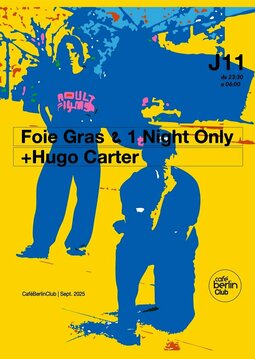 El 11 de septiembre, Berlín Club abre sus puertas a una velada especial con Foie Gras, 1Night Only y Hugo Carter. Una combinación de artistas con raíces en Madrid, París y Londres que representan lo más vibrante de la escena electrónica actual.